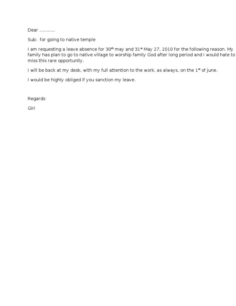 Leave request for going temple. Check spelling or type a new query. We did not find results for: Maybe you would like to learn more about one of these?